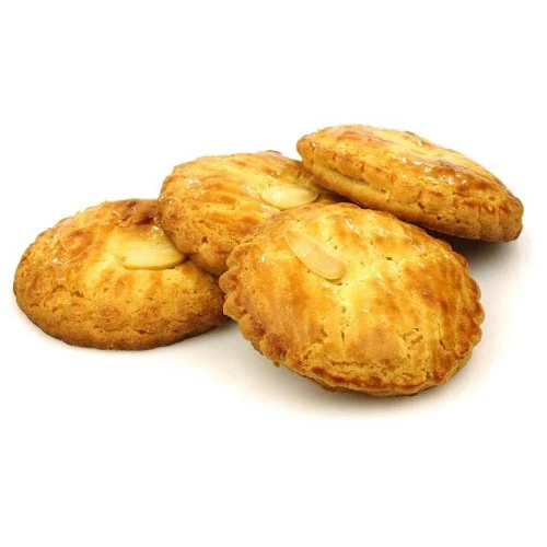 Omdat het deeg stevig blijft, steek je mooie rondjes uit en vul je ze eenvoudig met spijs. Met een laagje ei en amandelen erop creëer je een klassieke gevulde koek met een luxe uitstraling.