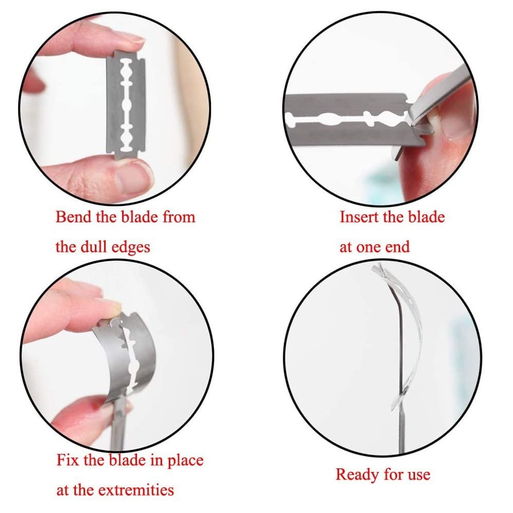 Dit mes bestaat uit een houten handgreep met een roestvrijstalen staaf waarin de mesjes stevig worden bevestigd. Daardoor blijft het mes stabiel tijdens gebruik, wat essentieel is voor een strak resultaat. Aangezien de set vijf losse mesjes bevat, kun je versleten mesjes eenvoudig vervangen. Zo werk je altijd met een scherp mes en behoud je volledige controle.